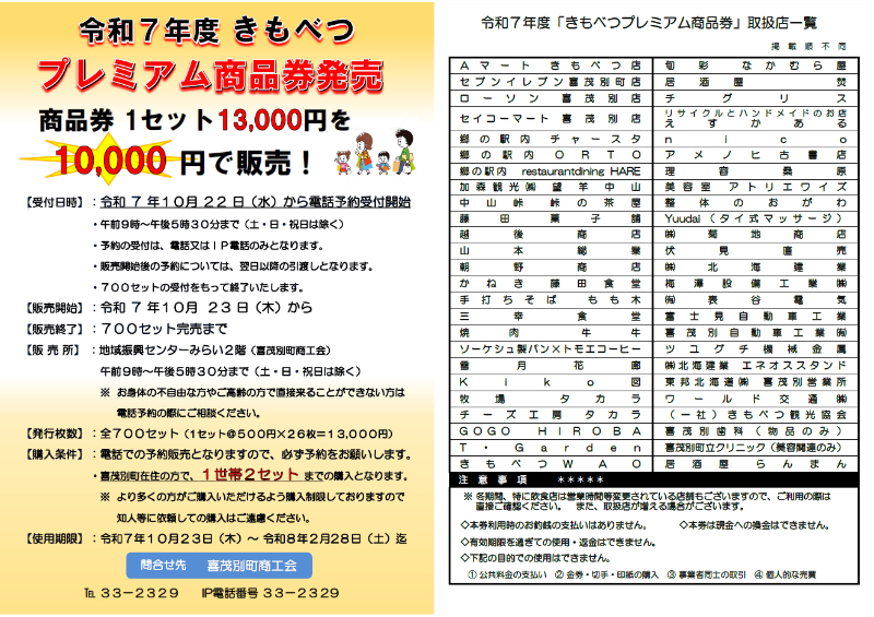 ・注意事項:①購入できるのは喜茂別町在住の方のみとなります。