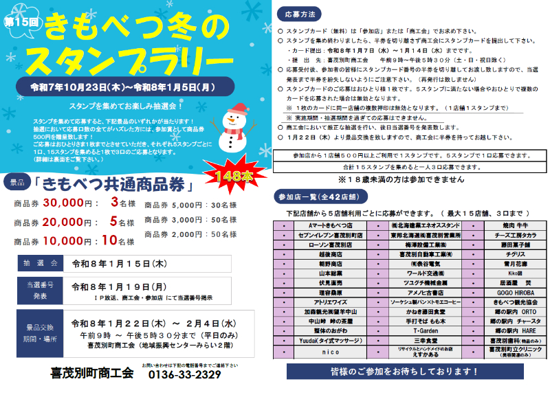 ※IP放送、商工会及び参加店舗にて当選番号を掲示します。